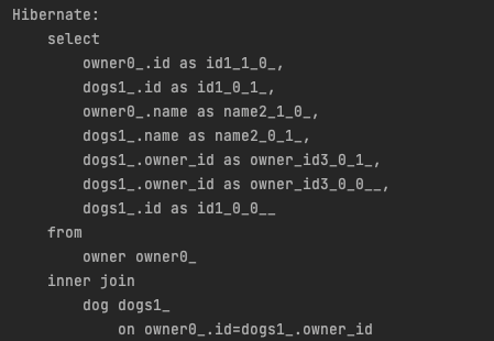 - 10개의 Owner 엔티티는 각각 2개의 Dog 엔티티와 연관관계를 맺고 있음