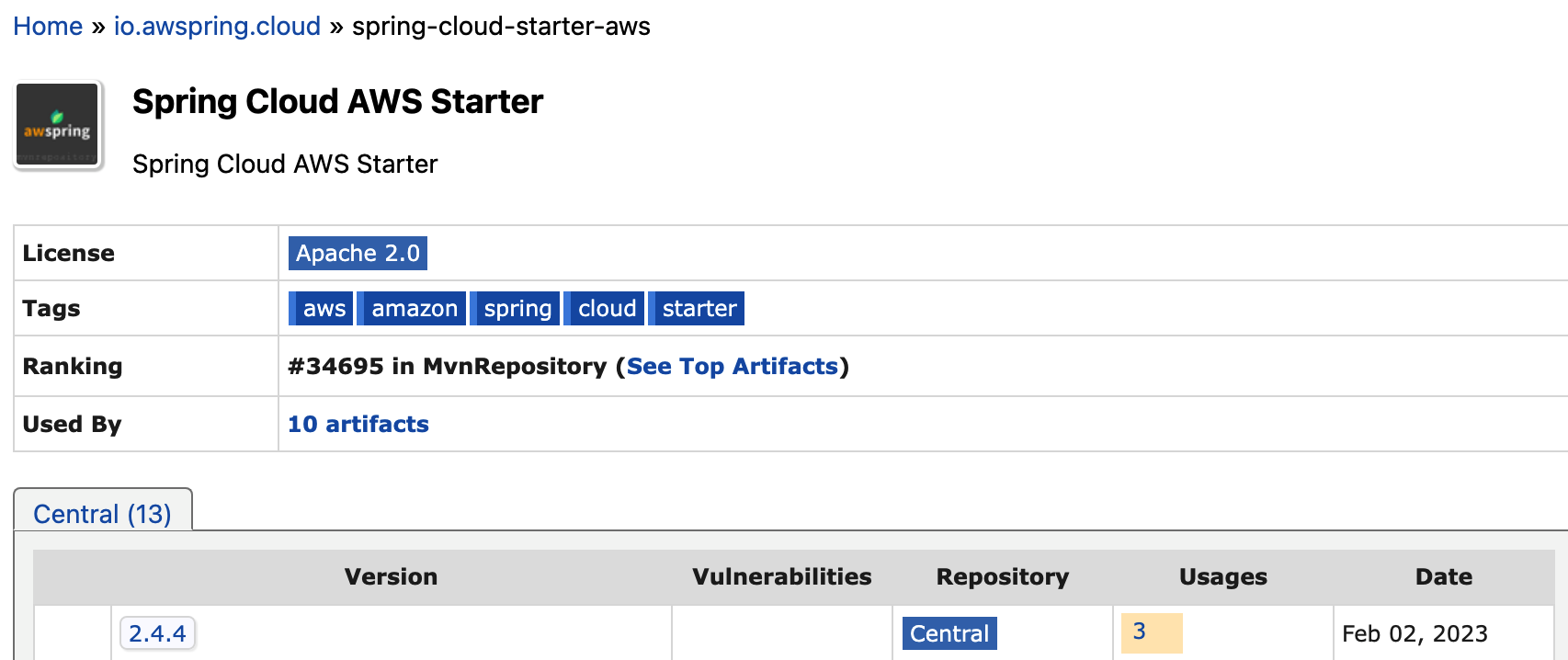 https://mvnrepository.com/artifact/io.awspring.cloud/spring-cloud-starter-aws